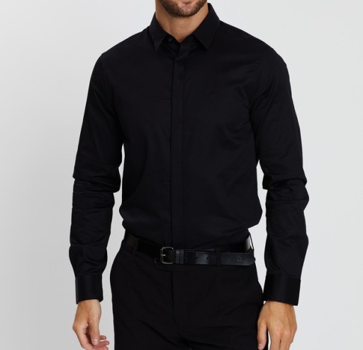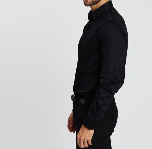 РУБАШКА МУЖСКАЯ ЧЕРНАЯ, ОБЫЧНАЯ, НА РАЗМЕР