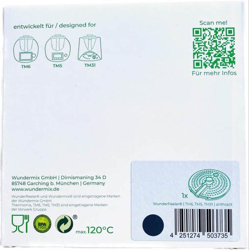 Thermomix to cenne urządzenie kuchenne. Dlatego naszym najwyższym priorytetem jest to, aby nie został uszkodzony przez użycie naszego WunderPeeler. Przez wiele miesięcy doświadczeni inżynierowie opracowali i przetestowali naszą obieraczkę zgodnie z najsurowszymi wymogami bezpieczeństwa. Wszystkie komponenty spełniają najwyższe standardy jakości, których przestrzeganie jest regularnie sprawdzane i zapewniane.