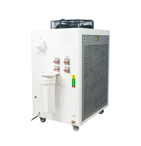 Profesjonalna chłodnica CW-6000 AI zapewnia aktywne chłodzenie tub w ploterach laserowych. Zbudowana jest z agregatu chłodzącego, utrzymującego temperaturę wody na ustalonym poziomie. Skutkuje to stabilną pracą tuby laserowej i zabezpiecza ją przed przegrzaniem. Urządzenie ma 2 wyjścia i 2 wejścia cieczy chłodzącej, co umożliwia chłodzenie dwóch maszyn jednocześnie.