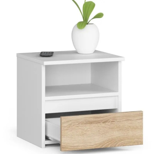 Szafka nocna CL1 40 cm 1 szuflada - biała - dąb sonoma