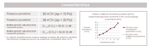 Ilość dostarczanego powietrza zależy od różnicy ciśnienia na zewnątrz i wewnątrz pomieszczenia. Dzieje się tak do poziomu różnicy ciśnień, przy którym wydajność nawiewnika osiąga wartość maksymalną. Nawiewnik ciśnieniowy manualny ma możliwość ręcznego otwarcia i zamknięcia.