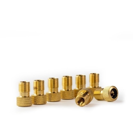 Adapter nakręcany na cienki zawór presta lun dunlop umożliwiający pompowanie kompresorem lub pompką samochodową.