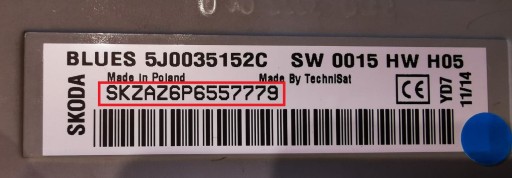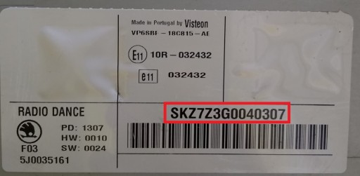 - Radio Skoda na przykład: SKZ1Z2H7986926, SKZ1Z7G5874125, SKZ6Z7H5785214