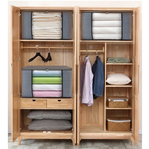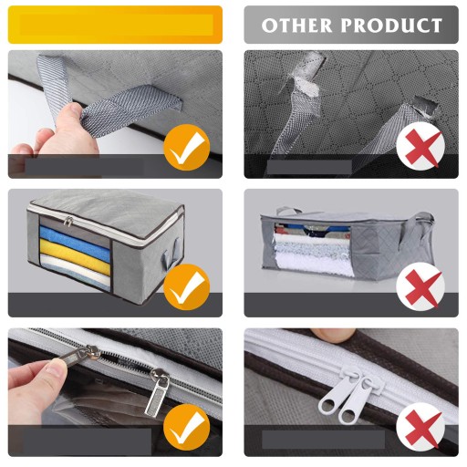Torba do przechowywania jest dostarczana w zestawie 3 szt., a każda torba ma wymiary 60 x 35 x 40 cm. Jest przestronny na kołdrę, koce, poduszki, pluszowe zabawki, kurtki lub inne ubrania. Składana konstrukcja pozwala na łatwe przechowywanie, gdy nie jest używana, oszczędza dużo miejsca.