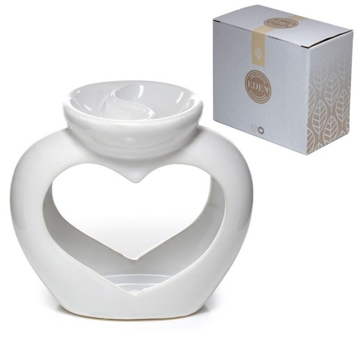 Ceramiczny podgrzewacz olejków i wosku z naczyniem podzielonym na dwie części "Serce" - biały