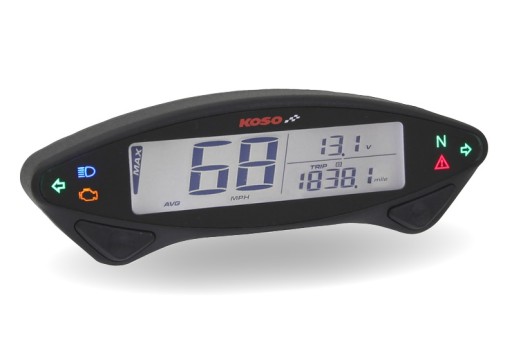 - Pokazuje prędkość, przebieg, czas jazdy, godzina, bieg neutralny, kierunkowskazy, światła, kontrolka awarii