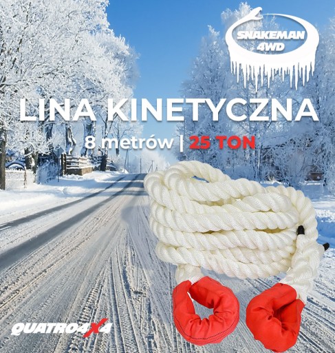 "Lina kinetyczna, popularnie zwana po prostu kinetykiem jest jedną z częściej używanych podczas wypraw off road. Gdy samochód utknie w błocie lub bagnie, lub zawiśnie na mostach, potrzeba zwiększonej siły, by go wyszarpać. Taki manewr często określa się jako strzał z kinetyka.