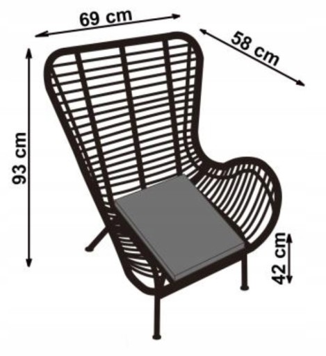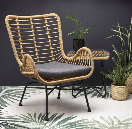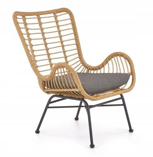 Wymiary: 69/58/93/42 cm, materiał: rattan syntetyczny / stal malowana proszkowo / tkanina, kolor: naturalny - popielaty
