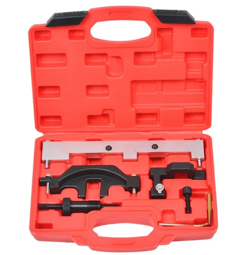 Blokuje silnik w celu sprawdzenia i regulacji rozrządu wałka rozrządu oraz usunięcia lub wymiany łańcucha rozrządu. Ten zestaw zawiera również płytkę Vanos, która jest wymagana do zablokowania układu zmiennych faz rozrządu w prawidłowej pozycji.