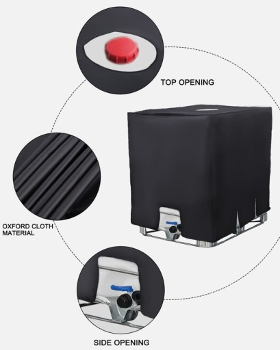 Pokrowiec ochronny jest wykonany z gęstej, wodoodpornej tkaniny Oxford, która zapewnia długą żywotność i ochronę przed korozją. Wodoszczelna plandeka zapobiega tworzeniu się glonów w zbiorniku magazynowym.