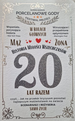 Kartka na 20 Rocznicę Ślubu Porcelanowe Gody Prezent na Rocznicę ślubu 5K23