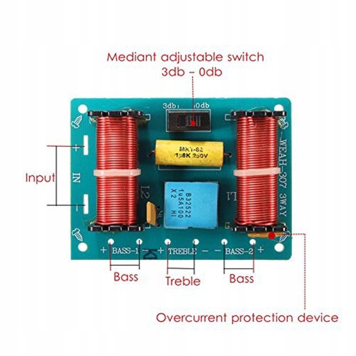 2 sztuki 3-drożny głośnik Crossover filtr audio dzielnik częstotliwości do samochodu w domu