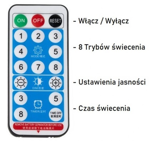 Lampki są wyposażone w czujnik zmierzchu umieszczonym w panelu solarnym uruchamia się automatycznie po zmierzchu dodatkowo jest możliwość ustawienia czasu świecenia 3, 5, 8 godzin lub bezczasowe.