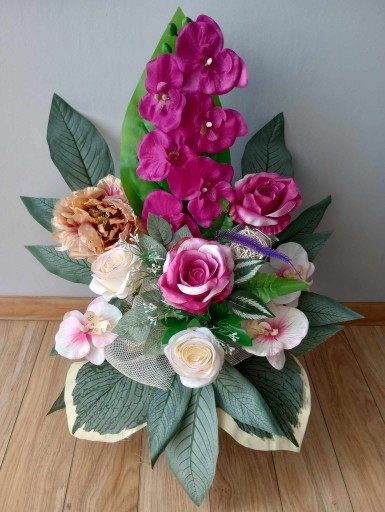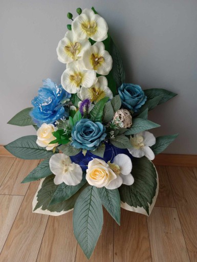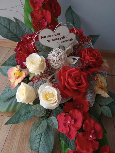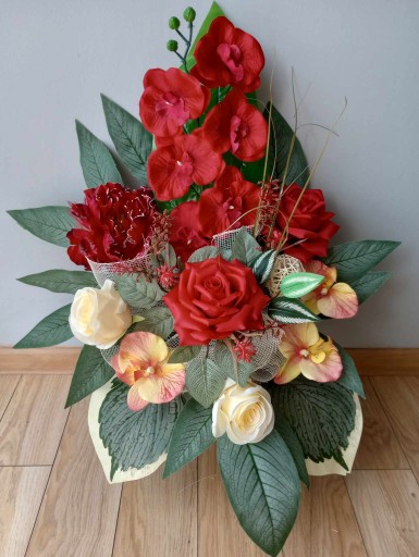 (cena dotyczy kompletu składającego się z dwóch części czyli kompozycji do postawienia na grobie i bukietu do wazonu razem)