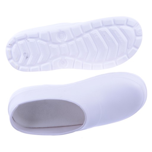- MATERIAŁ: Wierzch: EVA. Wyściółka: wymienna, antybakteryjna, antypoślizgowe wnętrze zapobiegające wyślizgiwaniu się stopy z obuwia (w przypadku nieużywania wymiennej wkładki). Podeszwa: EVA o właściwościach antypoślizgowych (podłoże stalowe i ceramiczne)