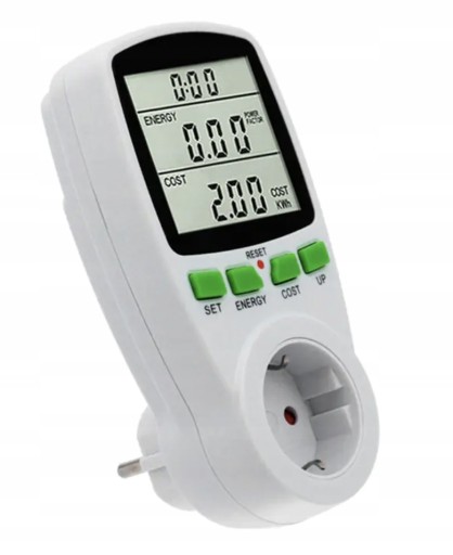 Miernik pozwoli na dokładny pomiar zużycia energii w twoim domu. Dzięki niemu z łatwością sprawdzisz, które urządzenia pobierają najwięcej energii. Zmniejszając zużycie energii znacząco zmniejszysz rachunki za energię prąd. Cyfrowy miernik umożliwia realne wyliczenie kosztów zużycia energii. Wystarczy ustawić cenę za 1 kWh a produkt obliczy na bieżąco koszt zużytej energii.