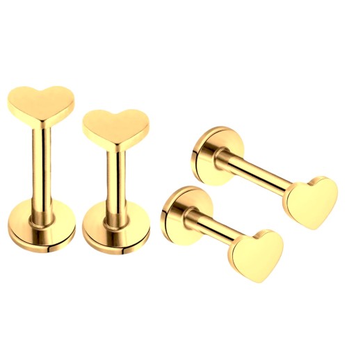 Tytanowy, złoty Labret z nakrętką w kształcie serca w rozmiarze 1,2/6/3