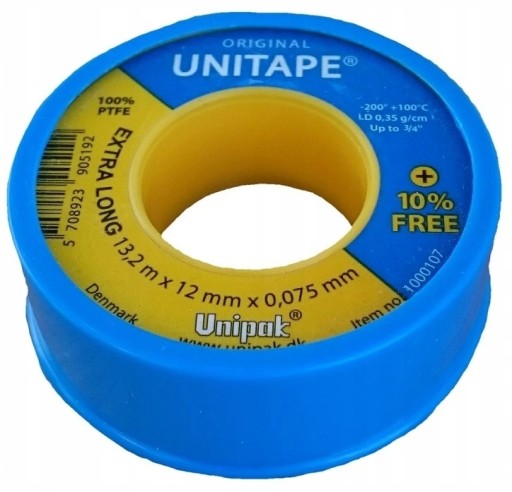 UNITAPE cechuje się wszystkimi właściwościami charakterystycznymi dla PTFE. Należy zawsze pamiętać, że dobór taśmy uszczelniającej zawsze powinien być uzależniony od wykonywanej pracy - czym wyższa gęstość PTFE w taśmie tym bardziej taśma jest wytrzymała na temperaturę i ciśnienie.