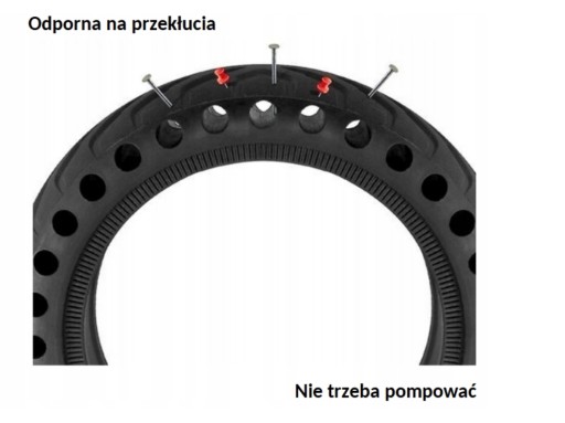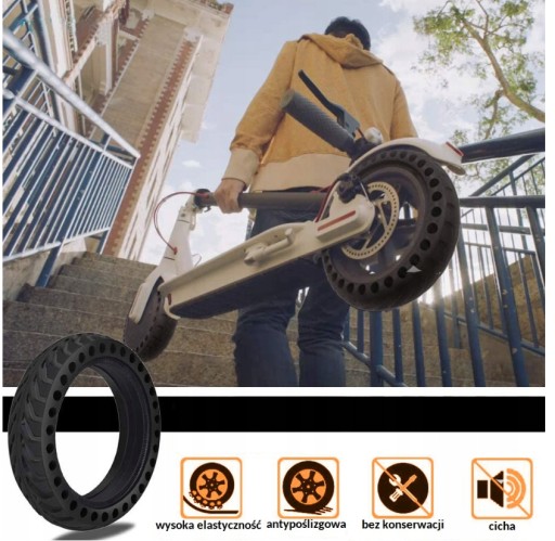 Ta opona została nawiercona, co poprawia komfort jazdy i zapewnia lepszą amortyzację w porównaniu do tradycyjnych pełnych opon. Opona pasuje zarówno na przód, jak i na tył hulajnogi elektrycznej. Idealnie radzi sobie w każdych warunkach, zarówno na asfalcie, mokrej nawierzchni, jak i na drogach nieutwardzonych.