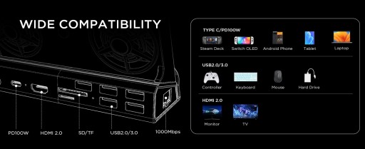 ДОК-ДОК-ДОК ROG ALLY STEAM DECK 10 В 1 USB-ДОКИНГ 4K 60