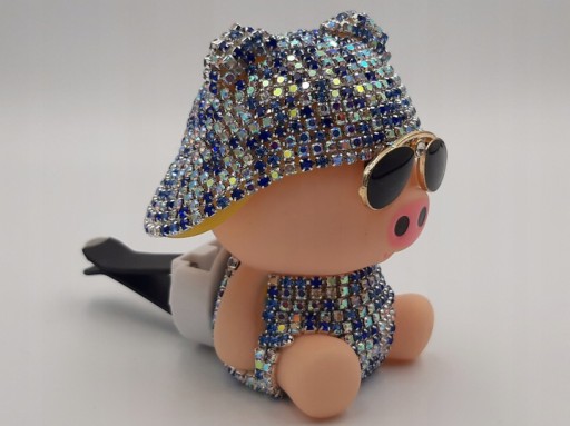 Świnka posiada kolorowe kryształki, które świecą się niczym diamenciki
