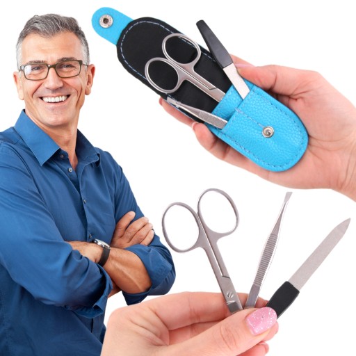 - ✅W komplecie 3 sztuki przydatnych na co dzień narzędzi do podstawowej pielęgnacji paznokci i brwi: nożyczki, mały pilniczek szafirowy i solidna pęseta