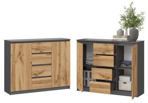 КОМОД 120 СМ, 2 ДВЕРИ, 4 ЯЩИКА, ДУБ ВОТАН АНТРАЦИТ