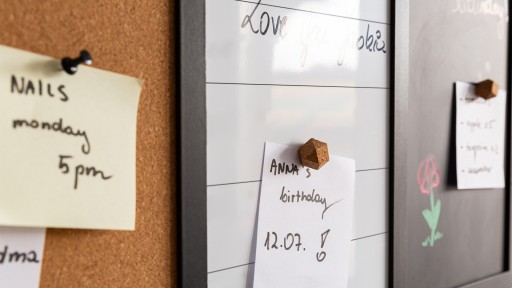 Dzięki różnym powierzchniom tablica zyskuje funkcjonalność kilku tablic. Zapisuj notatki, twórz listę rzeczy do zrobienia, przyczepiaj rachunki, przypinaj zdjęcia oraz wykorzystuj na wiele innych sposobów. Środkowa część może być wykorzystana jako planer!