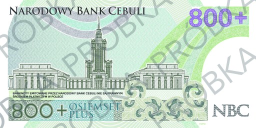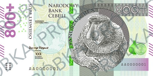 Ręcznik 800 plus został zaprojekotwany z naciskiem na detale, dlatego też każda osoba która zobaczy ten recznik z pewnością będzie zaskoczona. Ręcznik posiada dwie strony, na awersie została przedstawiona małpa nosacz, a na drugiej stronie znajduje się Pałac Kultury.