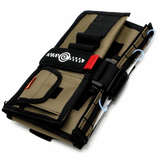 Część miękka (etui) to wykonany z grubego materiału (kordura 800), w trzech wersjach kolorystycznych (czarny, granatowy, khaki) prostokąt o szerokości 280mm i wysokości 240mm (po rozłożeniu). W formie złożonej szerokość nakolannika zmniejsza się do około 150mm (zależnie od zawartości wnętrza). Wewnętrzna strona etui podzielona została na trzy sekcje - środkową, obszytą w trzech czwartych grubą, wysokoprzezroczystą, bardzo wytrzymałą i elastyczną folią która, tworzy obszerną kieszeń z dostępem od góry i dołu, oraz dwa skrzydła - prawe, zawierające taśmę typu rzep pozwalającą dopiąć koszulki foliowe i lewe, wyposażone w dwie kieszenie materiałowe - dużą, wewnętrzną zapinaną na zamek i mniejszą naszytą po zewnętrznej stronie. Ponadto skrzydło lewe posiada doszytą gumową taśmę z przegródkami na przybory do pisania. Nakolannik jest przypinany do uda za pomocą gumowej taśmy z regulacją długości i 120mm "języka" doszytego po przeciwnej stronie. Doszyte do obu części rzepy pozwalają płynnie dopasować długość do obwodu uda.