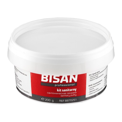 Kit sanitarny do uszczelniania odpływów oraz połączeń kielichowych w instalacjach sanitarnych (otworów spustowych umywalek, odpływów W.C., Itp.).Dobra przyczepność do większości materiałów. Wysoka odporność na działanie ścieków popłucznych. Nieagresywny w stosunku do skóry. Trwale zachowuje plastyczność, nie pęka (można malować). Połączenie łatwe do demontażu .Wytrzymuje temperaturę od -20 C do +130 C.