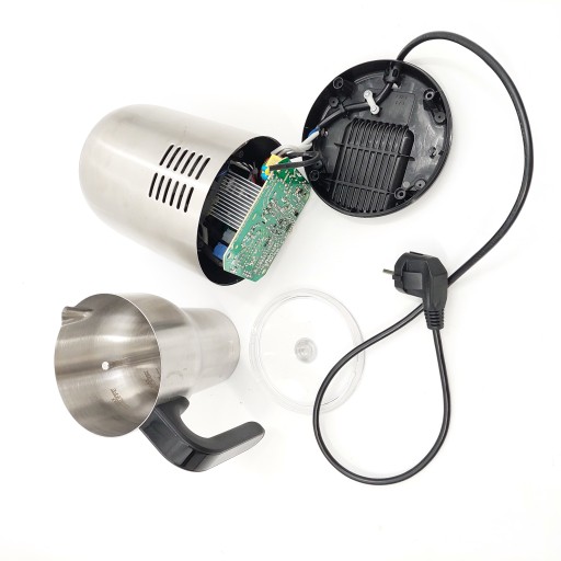 Podgrzewacz jest uszkodzony - nie włącza się, posiada uszkodzoną podstawę, wizualnie jest w dobrym stanie, posiada ślady powystawowe.