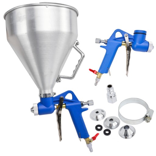Pistolet do malowania tynków z aluminiowym zbiornikiem o pojemności 4,5 litra.