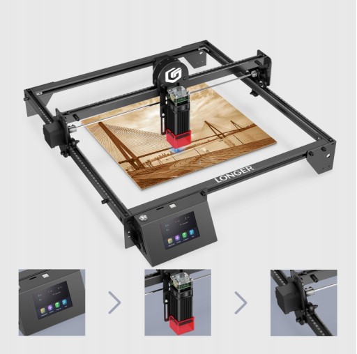 Grawerowanie i cięcie offline obsługiwane przez kolorowy ekran dotykowy 3,5 cala. Podczas grawerowania i cięcia nie jest potrzebne połączenie z komputerem, co ułatwia spełnienie różnych wymagań dla majsterkowiczów. Ekran dotykowy 3,5 cala jest dostępny zarówno w modelu Ray5 5W, jak i 10W.