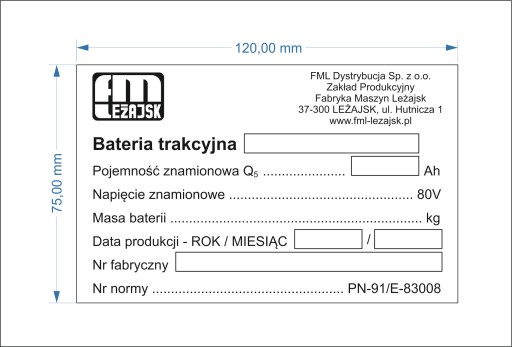 - Wymiary tabliczki: 120 mm x 75 mm x 0,4 mm