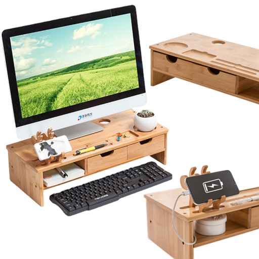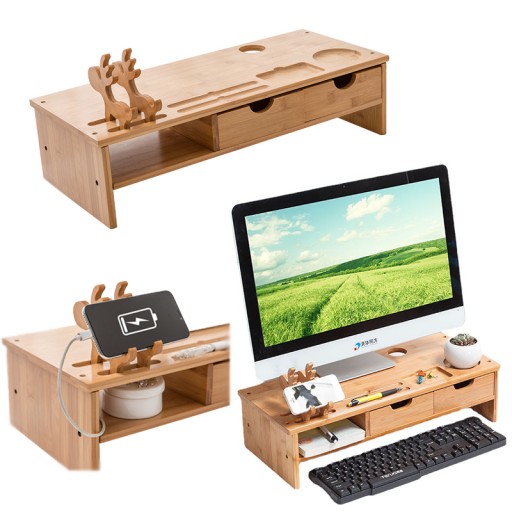 БАМБУКОВАЯ ПОДСТАВКА ДЛЯ МОНИТОРА, НОУТБУК, СТОЛ, ЯЩИКИ, ДЕРЖАТЕЛЬ ДЛЯ ТЕЛЕФОНА