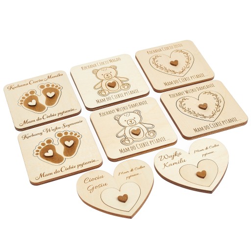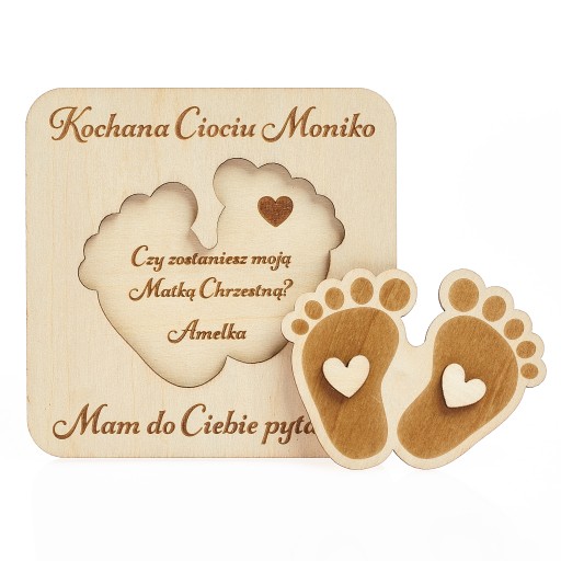 Szukasz oryginalnego sposobu, aby zadać pytanie bliskim osobom, czy chcieliby przyjąć rolę chrzestnego? Mamy dla Ciebie idealne rozwiązanie! Nasze personalizowane pytanie dla przyszłych chrzestnych wykonane jest z najwyższej jakości drewna o grubości 3mm, co gwarantuje trwałość i estetyczny wygląd tego niezwykłego upominku.