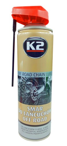 K2 Smar do łańcuchów OFF-ROAD - to wysoce wydajny smar, przeznaczony do smarowania łańcuchów oraz zębatek napędowych w motocyklach terenowych oraz quadach. Dzięki właściwościom smarująco-penetrującym, wnika we wszystkie szczeliny, chroniąc łańcuch oraz zębatki przed przedwczesnym zużyciem. Można go stosować we wszystkich typach łańcuchów, x-ring, o-ring, z-ring itp.