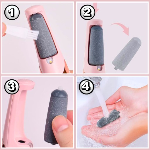Dodatkowo, dzięki ergonomicznej rączce , pilnik ten łatwo dociera do każdego miejsca na stopie. A jego Wymienne Głowice Obrotowe, dzięki zawartym mikrogranulkom, dokładnie usuwają obszary twardej skóry. produkt wielokrotnego użytku. Gdy głowica obrotowa zostanie zużyta, wystarczy ją wymienić na nową . Jedna głowica wystarcza przeciętnie na 12 zabiegów. Dzięki pilnikowi do stóp można uzyskać efekt profesjonalnego pedicure we własnym domu, oszczędzając czas i pieniądze.