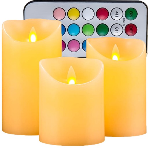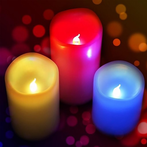 - Fabrycznie nowe 3 sztuki świeczek LED RGB komplet