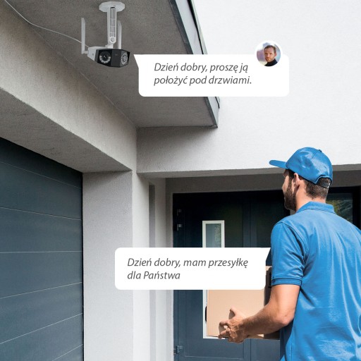Dzięki wbudowanemu mikrofonowi i głośnikowi możesz zdalnie porozmawiać z osobą przed kamerą
