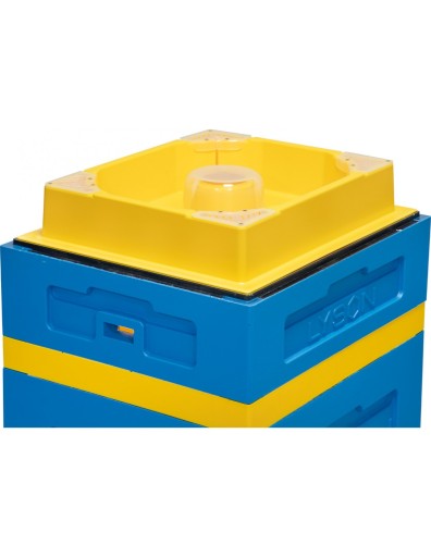 - Umieszczona bezpośrednio na korpusie, eliminuje potrzebę instalacji powałki, dzięki czemu w całości zostaje podgrzewana ciepłem wytwarzanym przez rodzinę pszczelą. 4 dodatkowe komory, znajdujące się w rogach podkarmiaczki, ze względu na swoją zmniejszoną powierzchnię, są szybciej nagrzewane przez rój. Dzięki temu, zaaplikowany wewnątrz syrop nie zalega fermentując na dnie. Ma to szczególne znaczenie podczas próby wypoziomowania ula, gdzie w tym wypadku nachylenie korpusu w żaden sposób nie wpływa na dostępność i temperaturę syropu wewnątrz urządzenia.