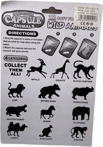 Magiczne kapsułki to podłużne tabletki, które, po zanurzeniu w wodzie, wykluwają się w różnorodne hodowlane zwierzęta w postaci mięciutkich gąbeczek.