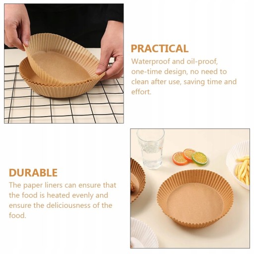 - Łatwe utrzymanie frytkownicy w czystości: Jednorazowa papierowa wkładka może skutecznie utrzymać frytkownicę z dala od resztek jedzenia, sprawia, że sprzątanie jest bardzo proste, a frytkownica i jej powłoka będą czyste jak by były nieużywane.