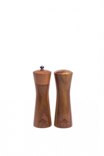 Solniczka i pieprzniczka NATUR to połączenie nowoczesnego i pięknego w swej prostocie tradycyjnego stylu. Wykonana została z drewna tekowego, co pozwala na osiąganie płynnych kształtów pasujących do każdej ręki. Słoje widoczne na przyrządach sprawiają, że czujemy się bliżej natury, a przyprawianie nimi sprawia że dania nabierają smaku. Trwałość wykonania powoduje, że posłuży nam przez wiele lat. Zestaw Natur składa się z solniczki i młynka do mielenia pieprzu. Będą też gustownym akcentem na naszych stołach podczas rodzinnych uroczystości. Naturalne drewno i funkcjonalność produktów znajdą zastosowanie w różnych wnętrzach i aranżacjach kuchennych. Do zestawu można dokupić deskę do krojenia oraz zestaw noży w bloku znajdujący się na stronach naszego sklepu. Solniczka i pieprzniczka Natur będzie użytecznym produktem dla działających w kuchni jak również idealnym pomysłem na prezent.