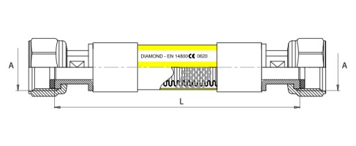 Przewód przyłączeniowy DIAMOND Flex DN 12, którego główne części tj. elastyczna karbowana rura z przyspawanymi przyłączami oraz oplot siatkowy rury wykonane są ze stali nierdzewnej. Od strony zewnętrznej przewód posiada osłonę z PVC. Przyłącze z zawalcowaną, luźną, mosiężną nakrętką posiada uszczelkę z NBR i w wersji kątowej – mosiężne kolano. Przeznaczony jest do przyłączania urządzeń domowych, do instalacji gazowej w budynkach zasilanej gazem naturalnym o ciśnieniu do 0,5 bara.