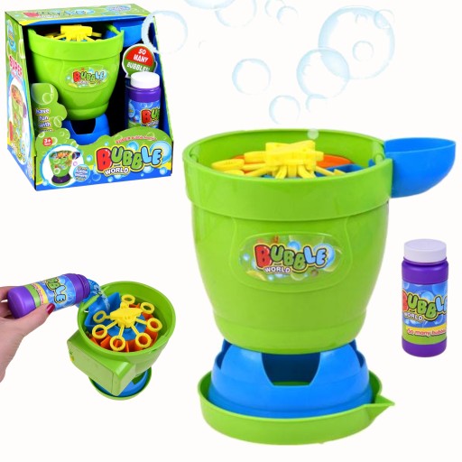 Maszynka do baniek mydlanych płyn 118 ml bańkiRobienie baniek mydlanych to jedna z ulubionych zabaw naszych dzieci. Jest doskonałą formą spędzania czasu na świeżym powietrzu, i nie tylko.Maszynka do robienia baniek to świetny gadżet, który tworzy dużo kolorowych baniek! Wystarczy wlać płyn do przeznaczonego do tego miejsca u góry, nacisnąć przycisk z boku i uruchomi się górna obrotowa platforma, która będzie wydmuchiwała ogromną ilość kolorowych baniek.Maszynka do robienia baniek mydlanych to zabawka, która nadaje się zarówno do zabawy w ogrodzie jak i w domu.Wymiary maszynki: 18 x 17 x 14,5 cmWiek: 3+Zabawka posiada certyfikat CE, EN71.W skład zestawu wchodzi:Maszynka do robienia baniekOciekacz do płynuButeleczka z płynem 118 mlKolorowe opakowanie z okienkiemInstrukcja obsługi:Umieść prawidłowo cztery baterie AA w przeznaczonym do tego miejscu z boku urządzeniaWlej płyn do pojemnika u góry korzystając z lejkaNaciśnij przycisk z bokuCiesz się wydobywającymi się z góry bańkamiWymiary opakowania: 21 x 16 x 20 cmWymiary maszynki: 18 x 17 x 14,5 cmPojemność buteleczek z płynem: 118 mlBaterie: 4 x AA (brak w zestawie)Wiek: 3+Zabawka posiada certyfikat CE, EN71.Zabawka zapakowana w ładne kolorowe pudełko z okienkiem, idealnie nadaje się na prezent.