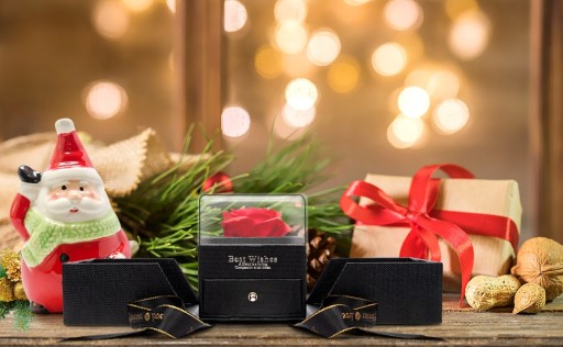 - Kwiatek jest całkowicie naprawiany, dzięki czemu nie spada, nawet jeśli jest odwrócony. Jest to szkatułka na dodatek ze stabilizowaną różą. Dla tych, którzy chcą dać prezent innym, to pudełko upominkowe jest idealne do wkładania pierścionków/naszyjników/kolczyków/zegarków itp. pod różą stabilizowaną.