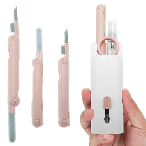 ▶️ Czyścik Wielofunkcyjny zestaw czyszczący do słuchawek airpods klawiatur 7w1 Różowo-biały