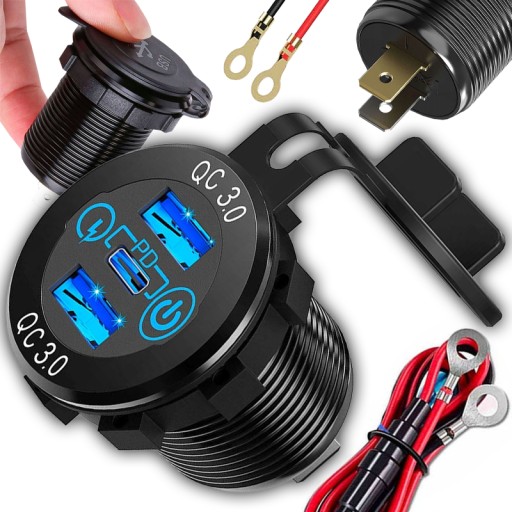 Ładowarka samochodowa LED gniazdo Alogy Mini Car Charge do motocykla zasilacz konektory Alogy 2x USB QC 3.0 + USB-C PD 60W to wysokiej jakości urządzenie które umożliwia szybkie ładowanie. Posiada podświetlenie LED oraz dotykowy włącznik.